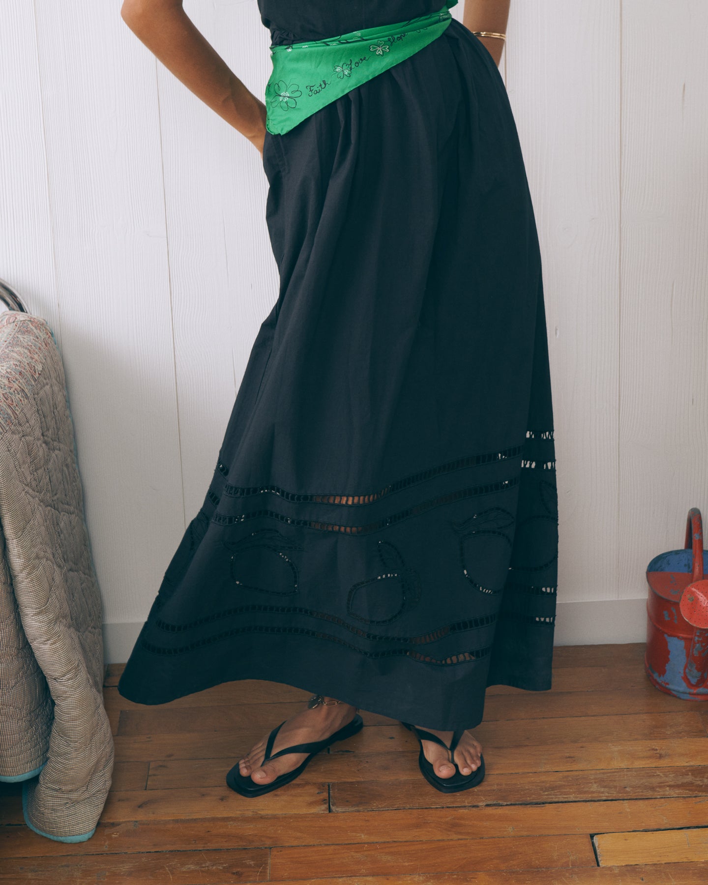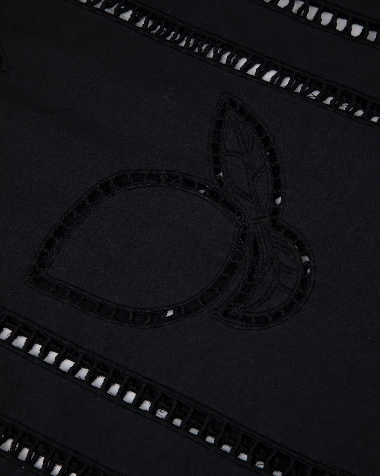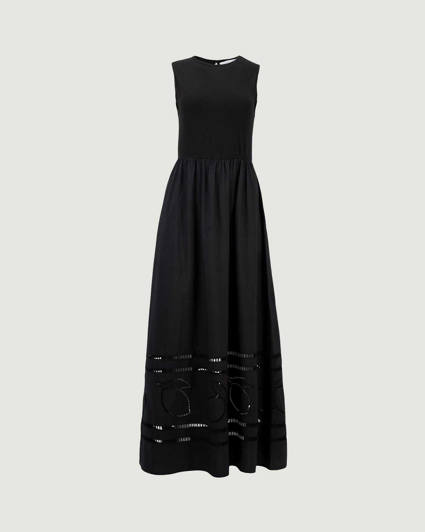 Our Cresson dress is made of two different materials and is sleeveless. Its English embroidery pays homage to the lemon, its zest and its zest.