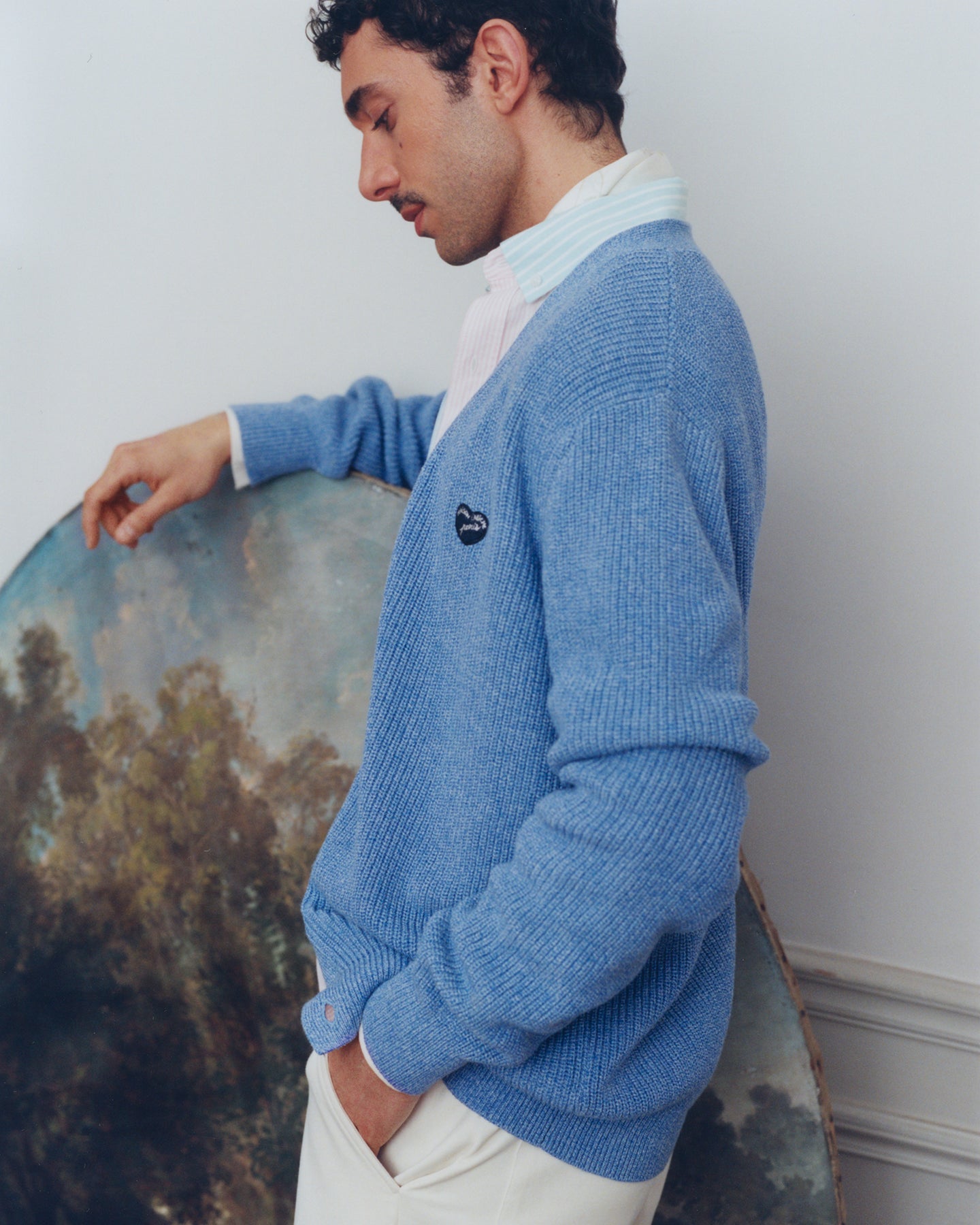 Our Poirée cardigan has a straight cut, a button fastening in the middle at the front, and ribbed cuffs and hem. Its patch is our signature.