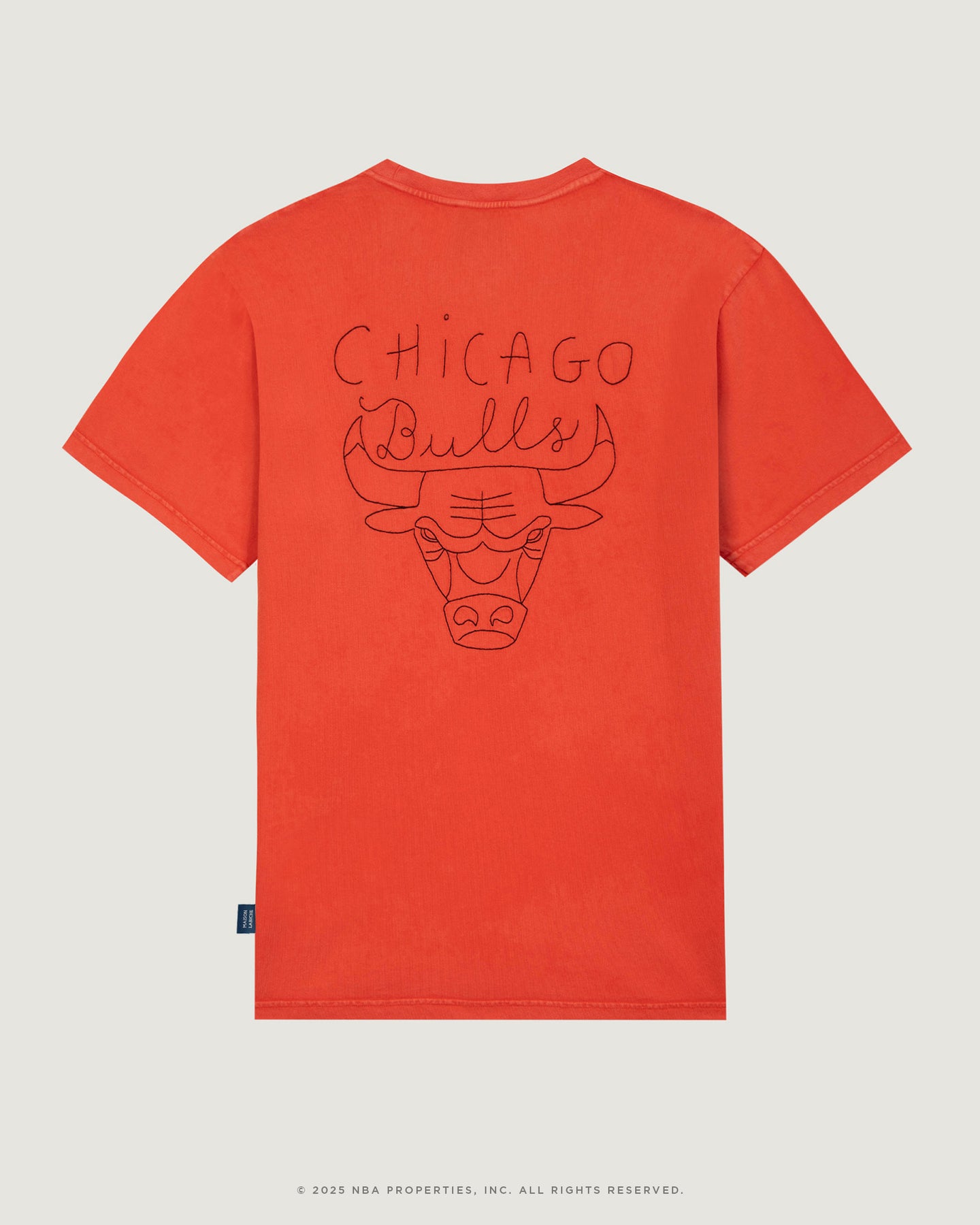 Our must-have Patureau T-shirt has a loose fit, a ribbed neckline, double needle finishes at the bottom of the sleeves and body. Its embroidery features the legendary Chicago Bulls logo revisited by Maison Labiche.