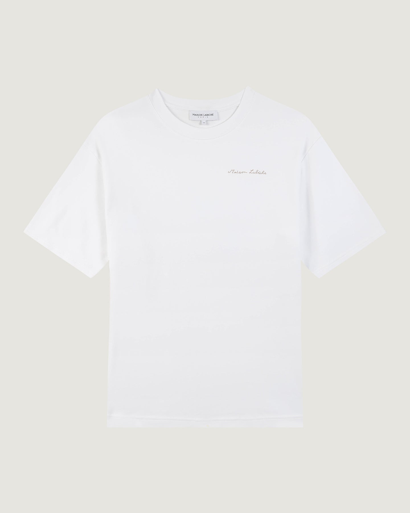 Our Chassaigne T-shirt has a comfortable cut, a ribbed neckline and double needle finishes at the bottom of the sleeves and body. It is made of thick and soft knit, very pleasant to wear. Its embroidery is the new Maison Labiche signature.