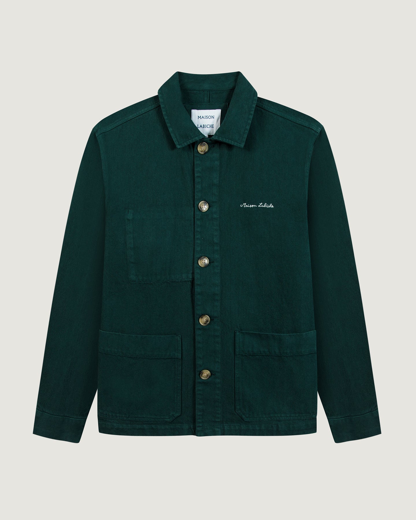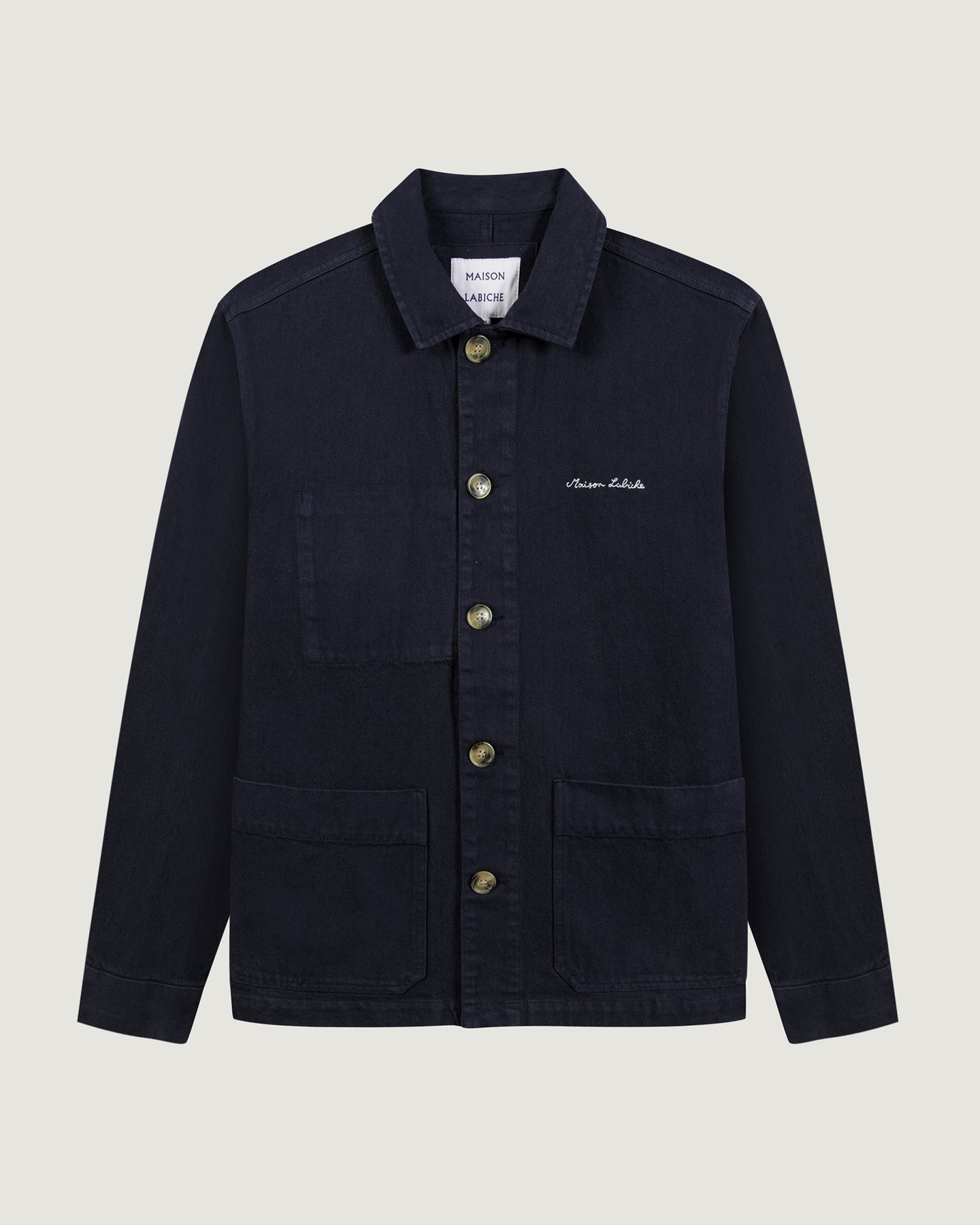 Our iconic Sébasto jacket has a straight cut, patch pockets, and buttoned opening and cuffs. Its embroidery is the new signature of Maison Labiche.