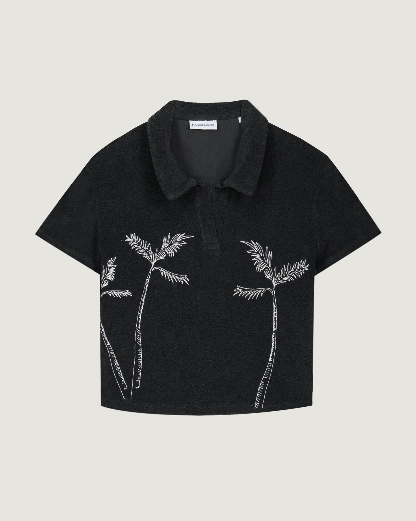 Our Marces terry cloth polo shirt has a straight, short cut and a flat polo collar. Its label bears the Maison Labiche signature. Its embroidery takes you into the jungle