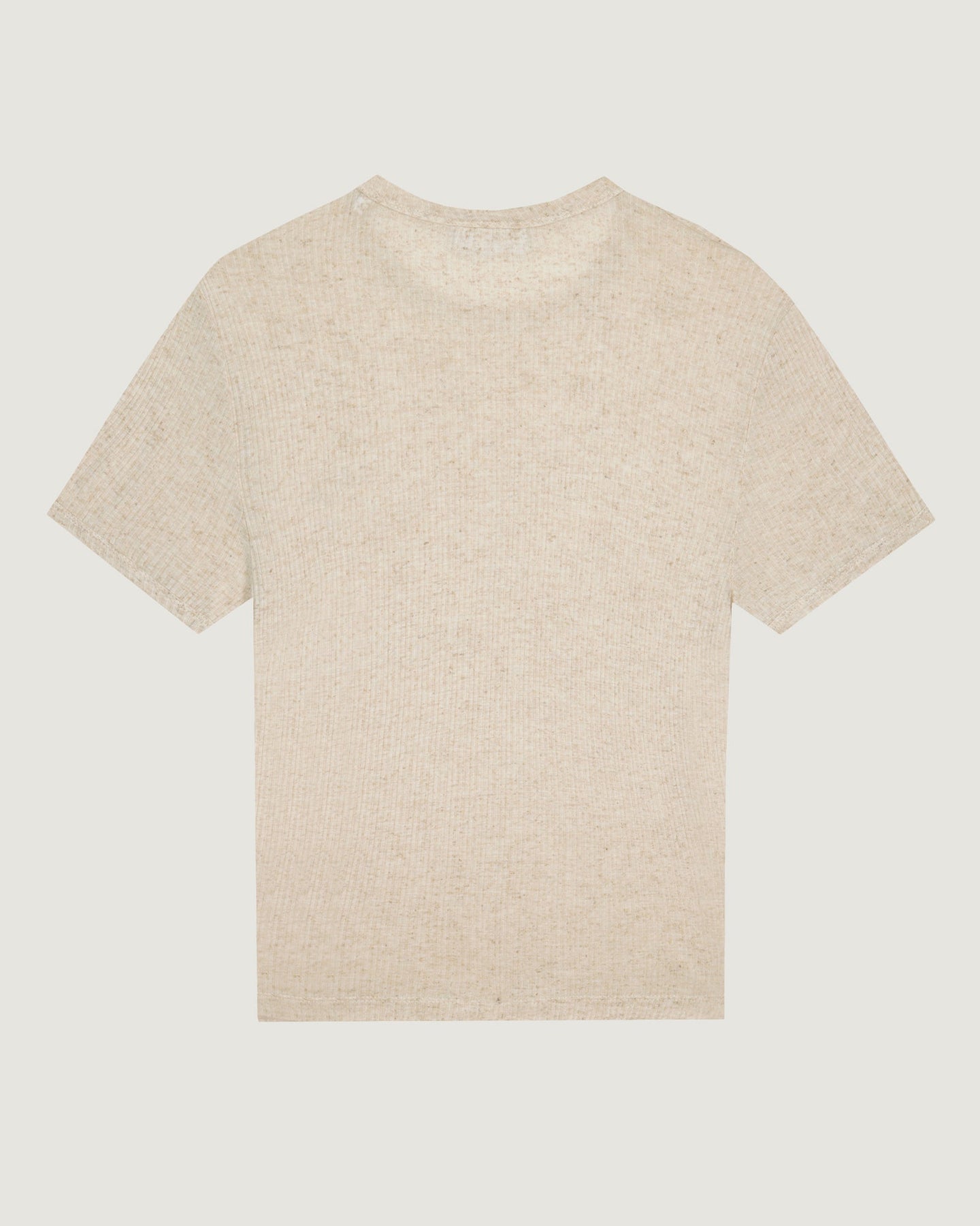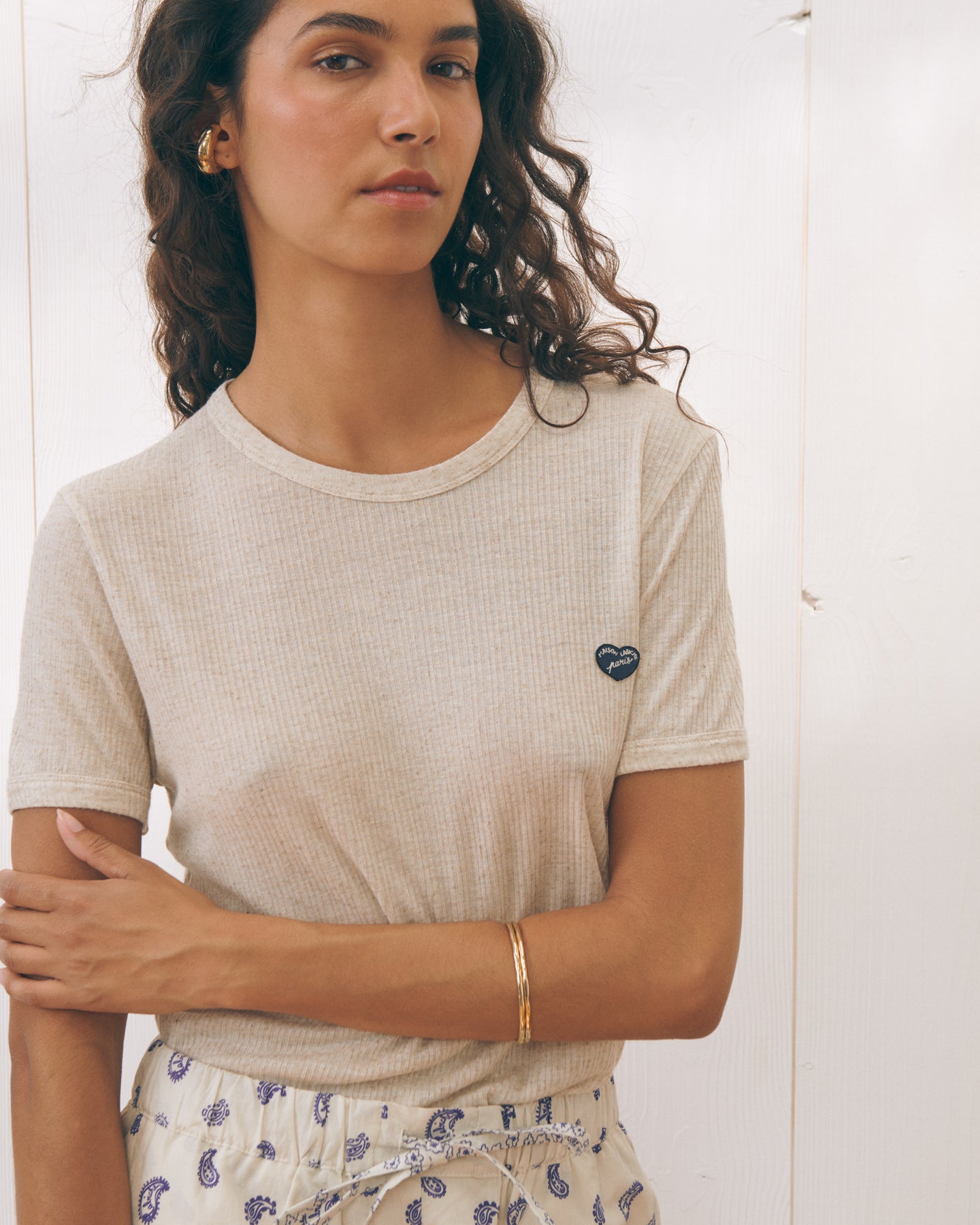 Our Montherlant-inspired vintage t-shirt has a fitted cut, with the neckline and sleeve cuffs finished with ribbed trim. The hem is double-needle stitched. Its patch is our signature.