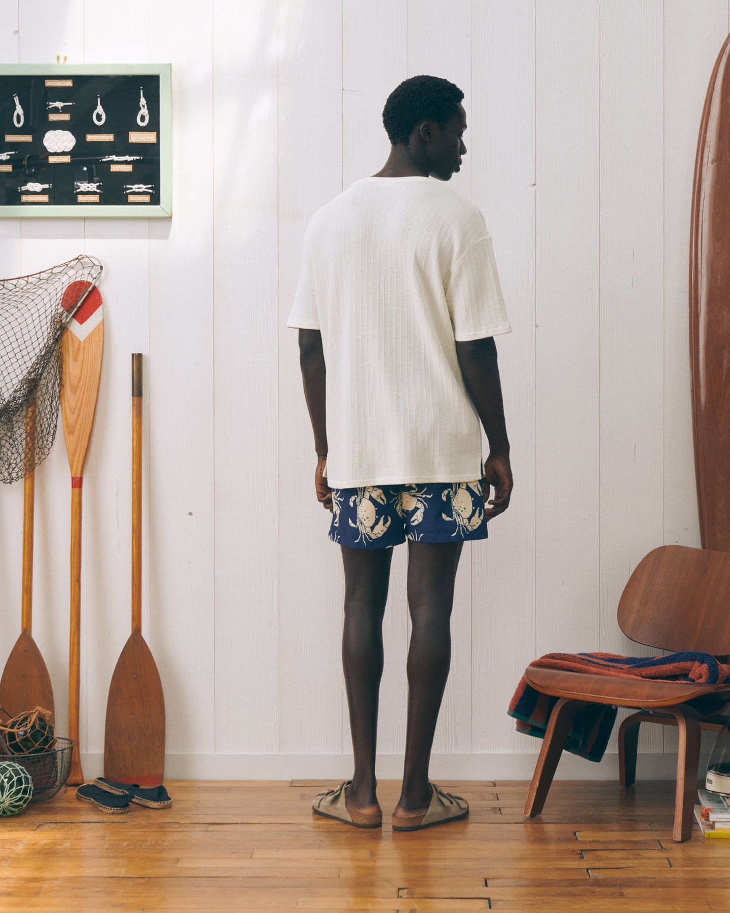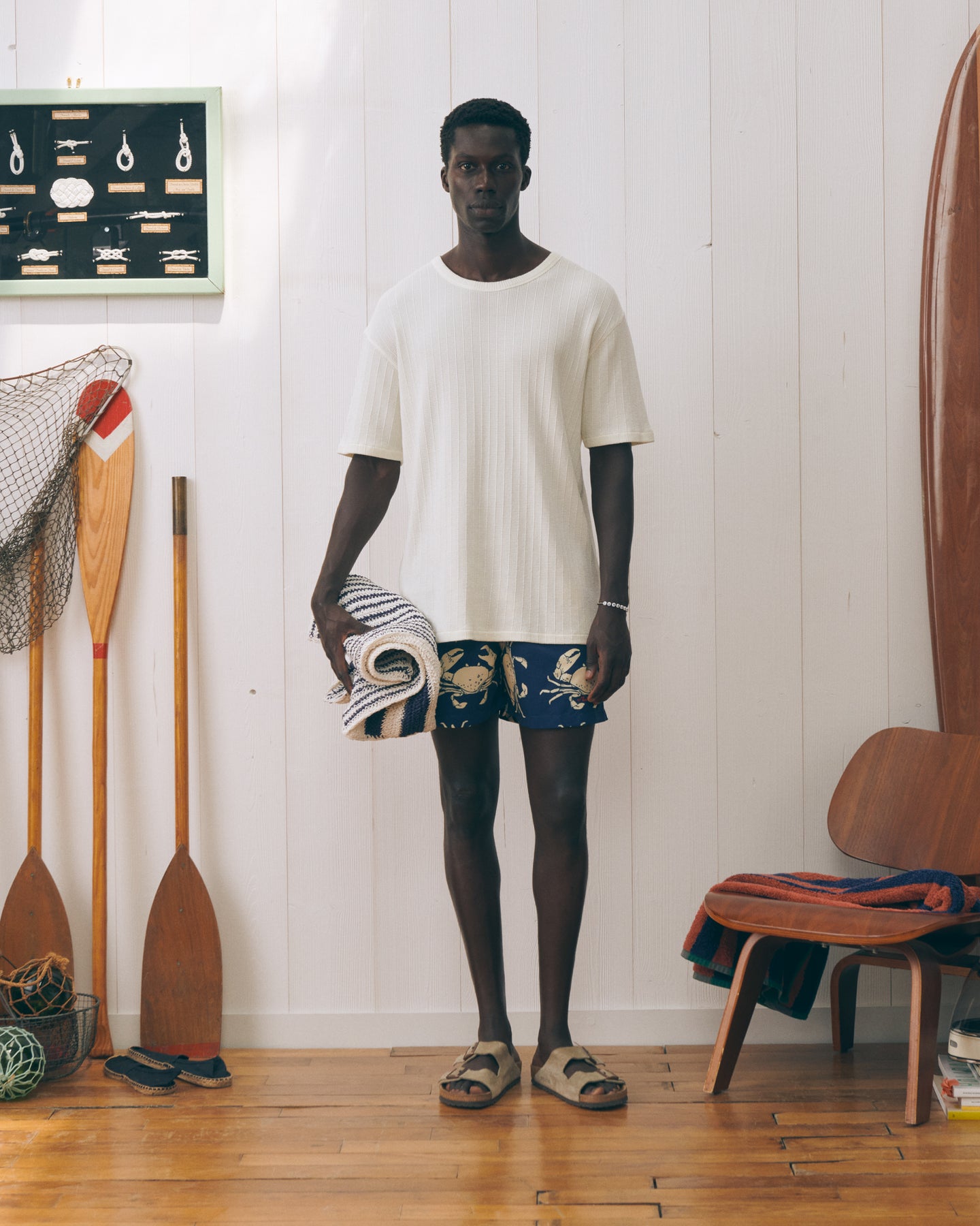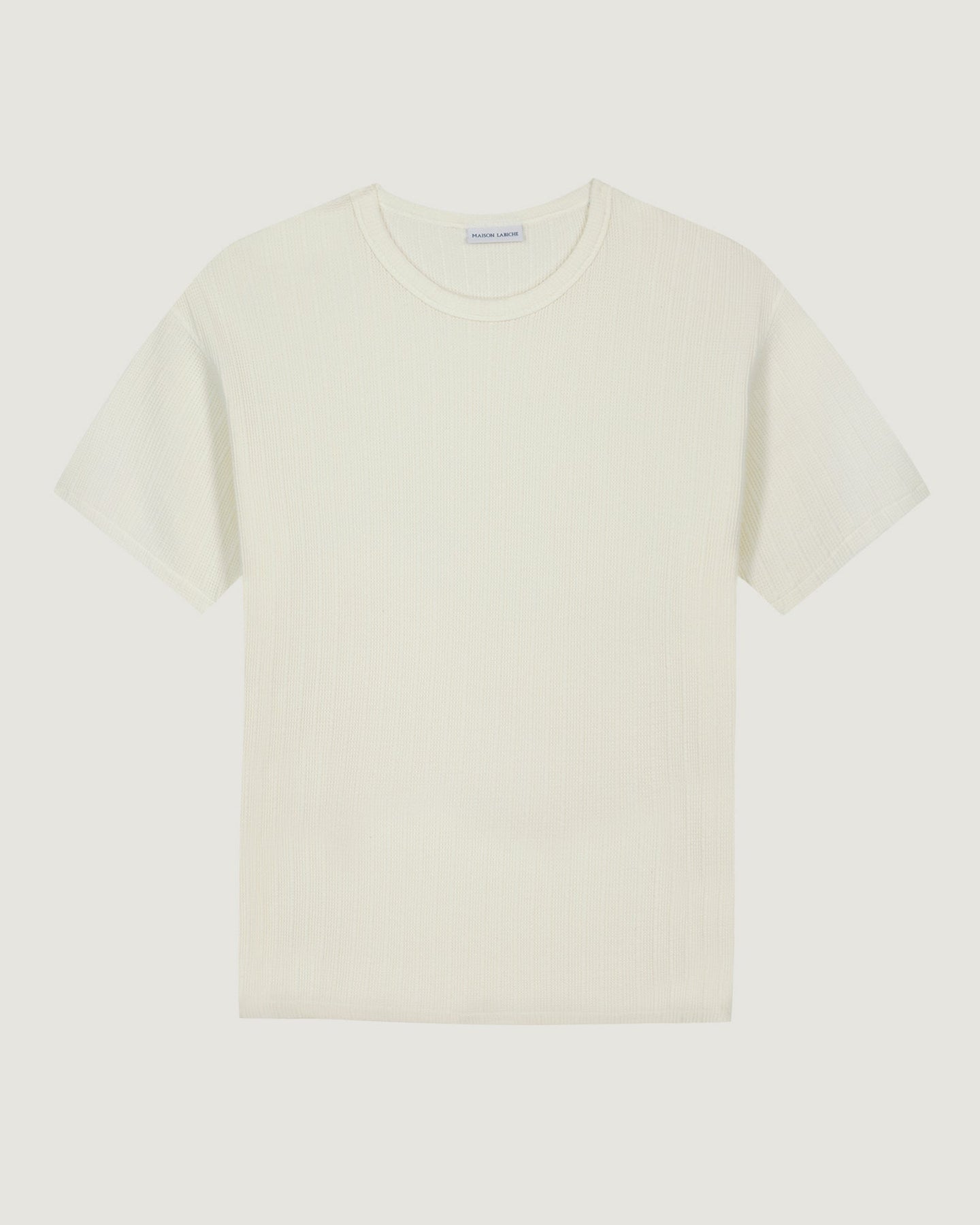 Our Ziem terry cloth t-shirt has a loose, comfortable fit with side slits. Its neckline is made of terry cloth with a Dorito trim.