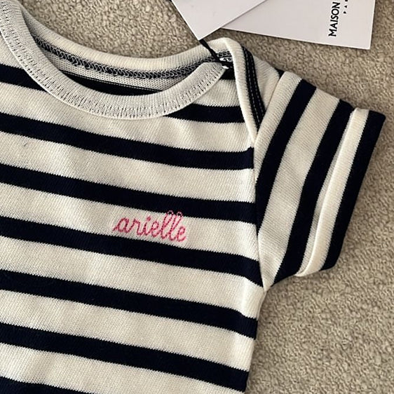 Maison Labiche vous propose une large gamme de produits à personnaliser : de nos iconiques tee-shirts blancs au body naissance, en passant par une chemise ou une veste, apposez vos mots sur l’une de nos pièces intemporelles.