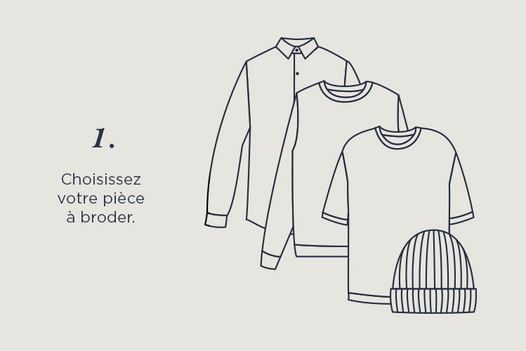 Maison Labiche vous propose une large gamme de produits à personnaliser : de nos iconiques tee-shirts blancs au body naissance, en passant par une chemise ou une veste, apposez vos mots sur l’une de nos pièces intemporelles.