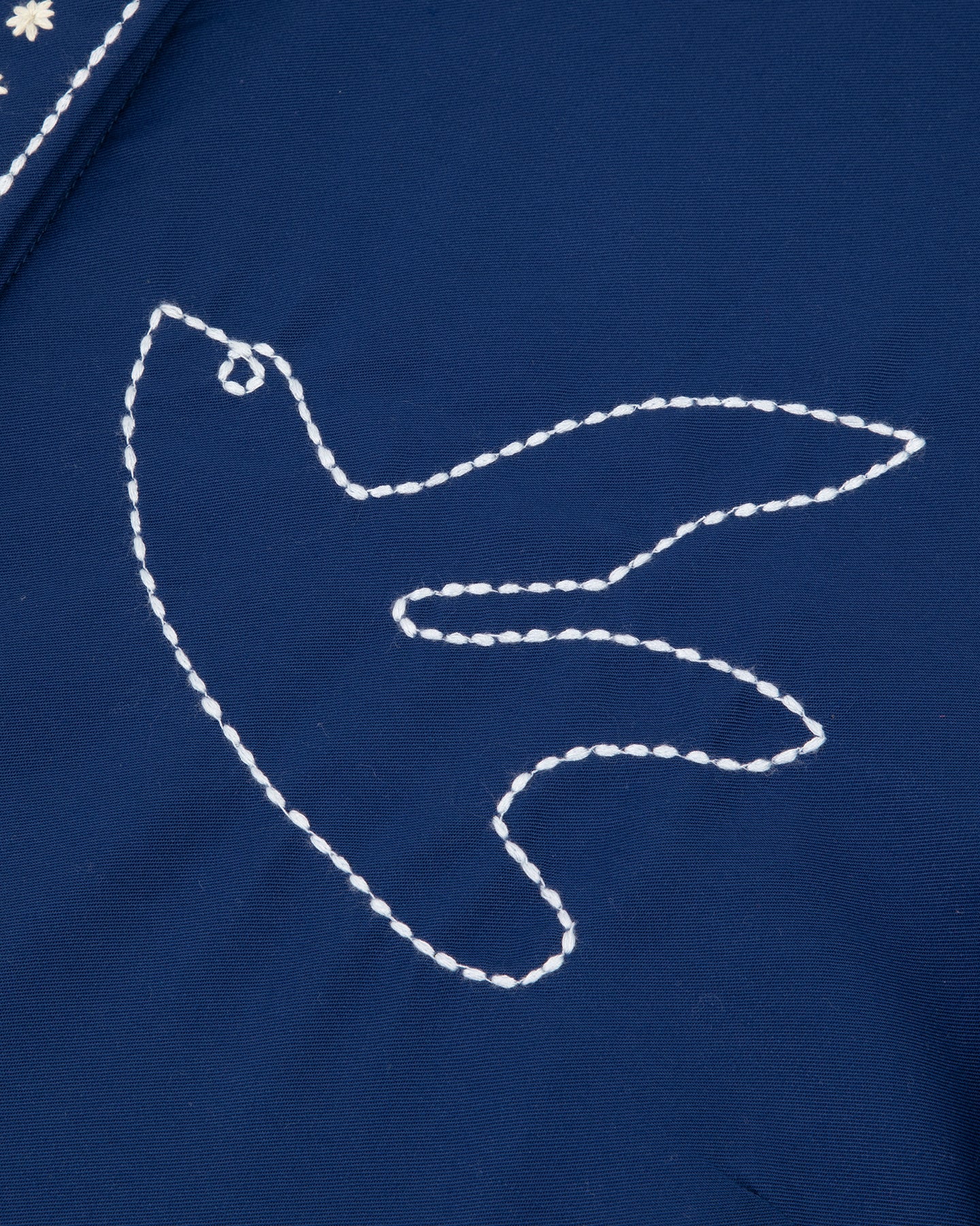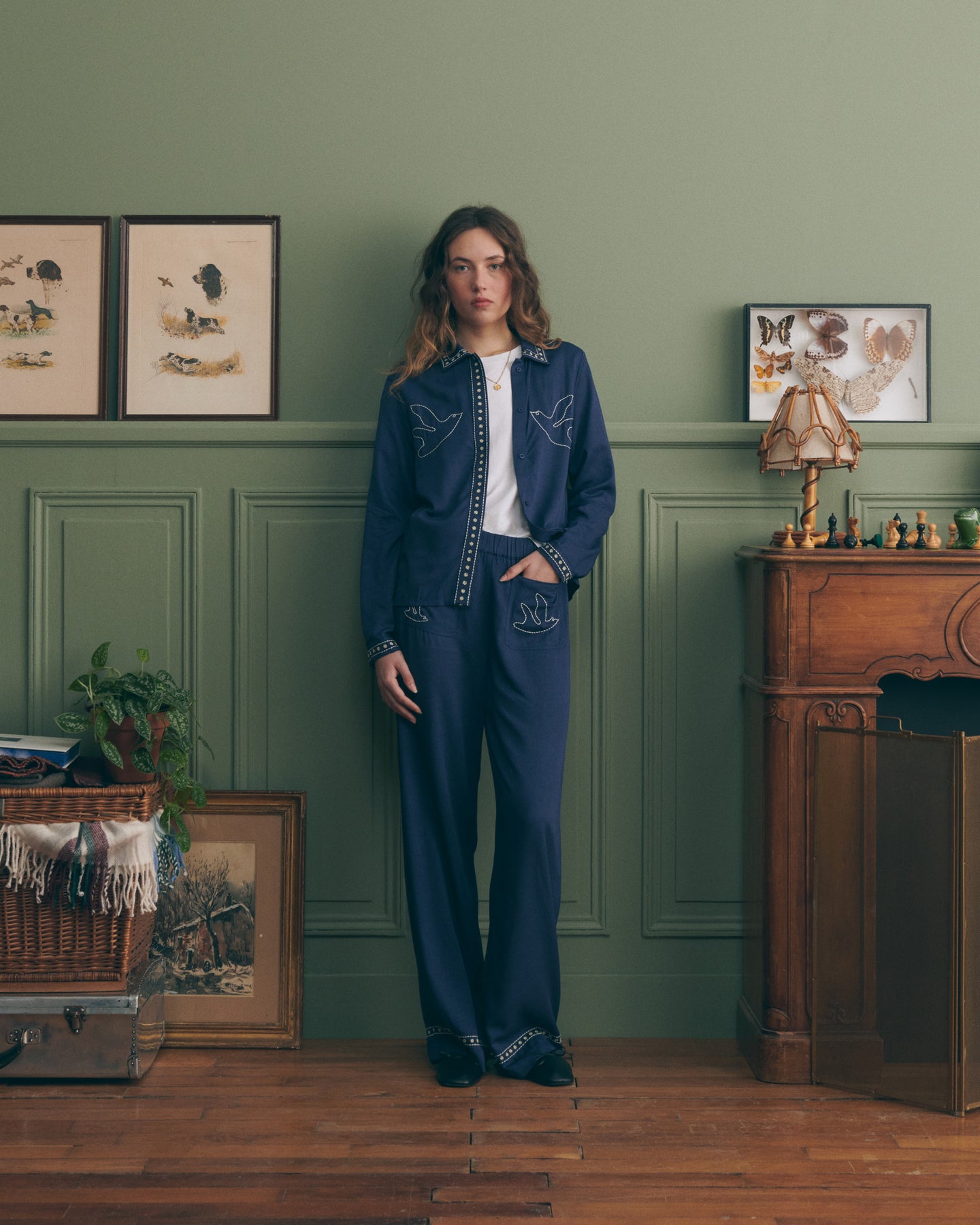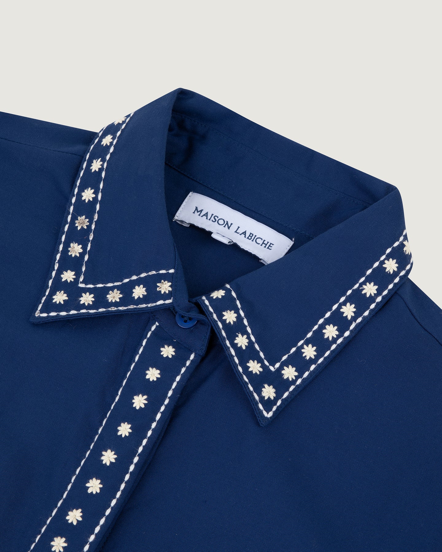Notre chemise Vallès a une coupe droite et large, une patte de boutonnage cachée et des boutons graves Maison Labiche.