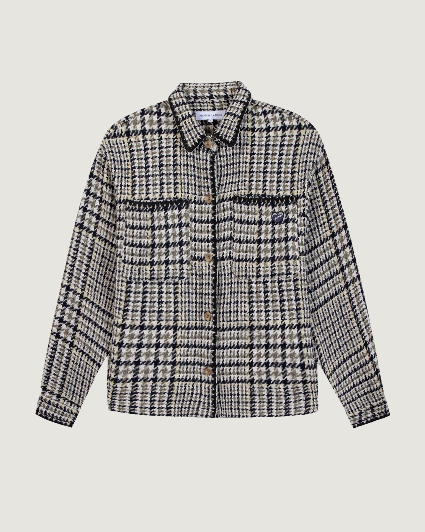 Notre chemise Minjoz a une coupe droite et large, deux poches plaquées sur la poitrine et des boutons gravés Maison Labiche.