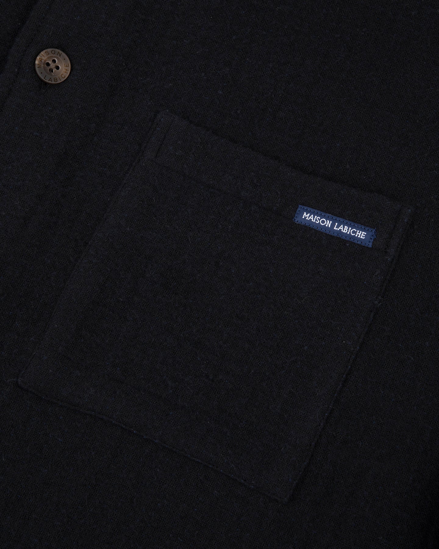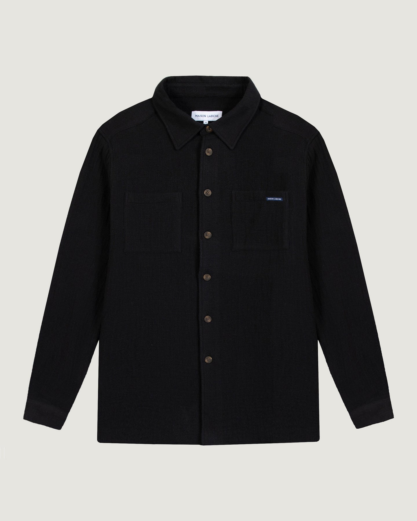 Notre chemise Monge a une coupe droite et large, deux poches plaquées sur la poitrine, et des boutons gravés Maison Labiche.