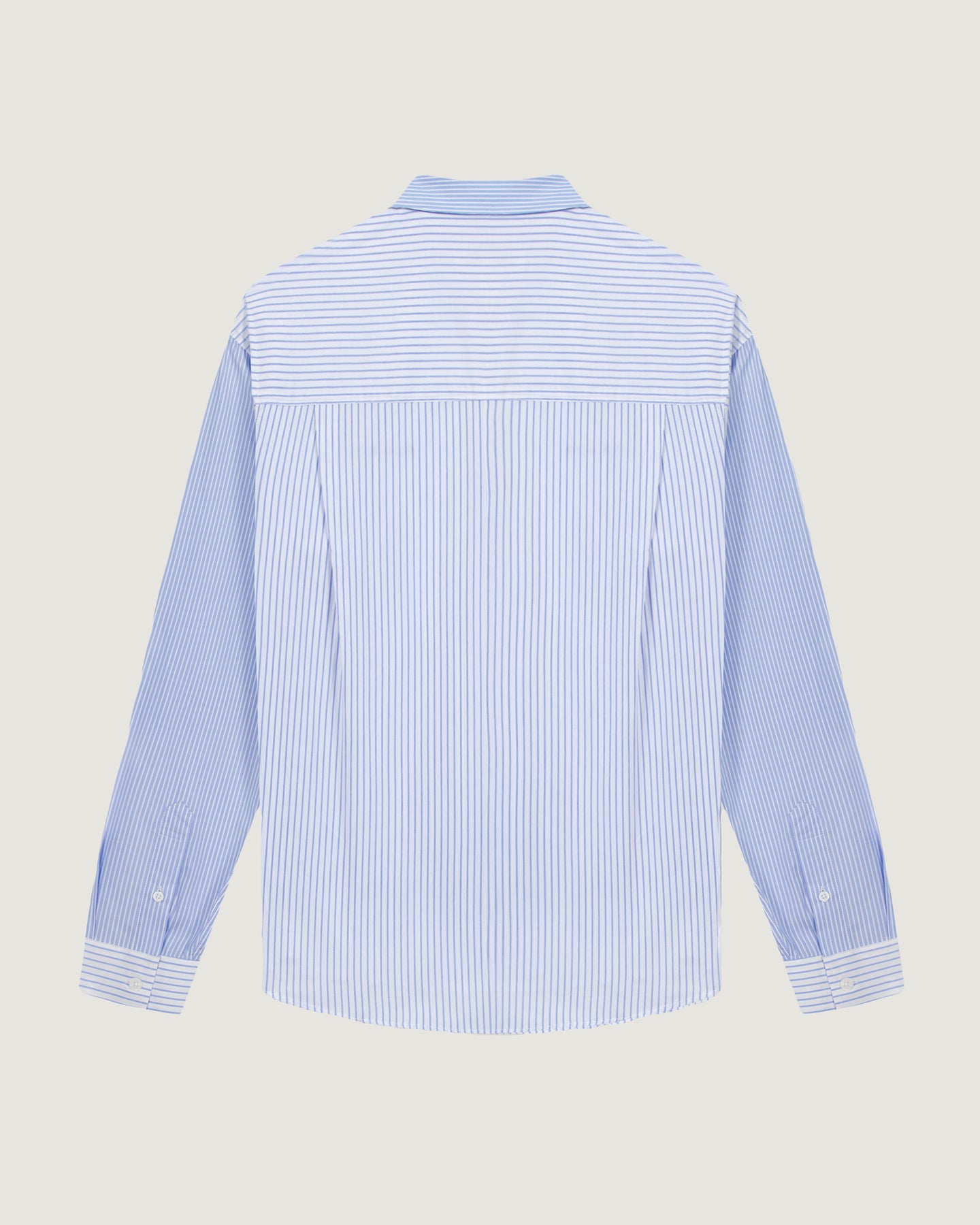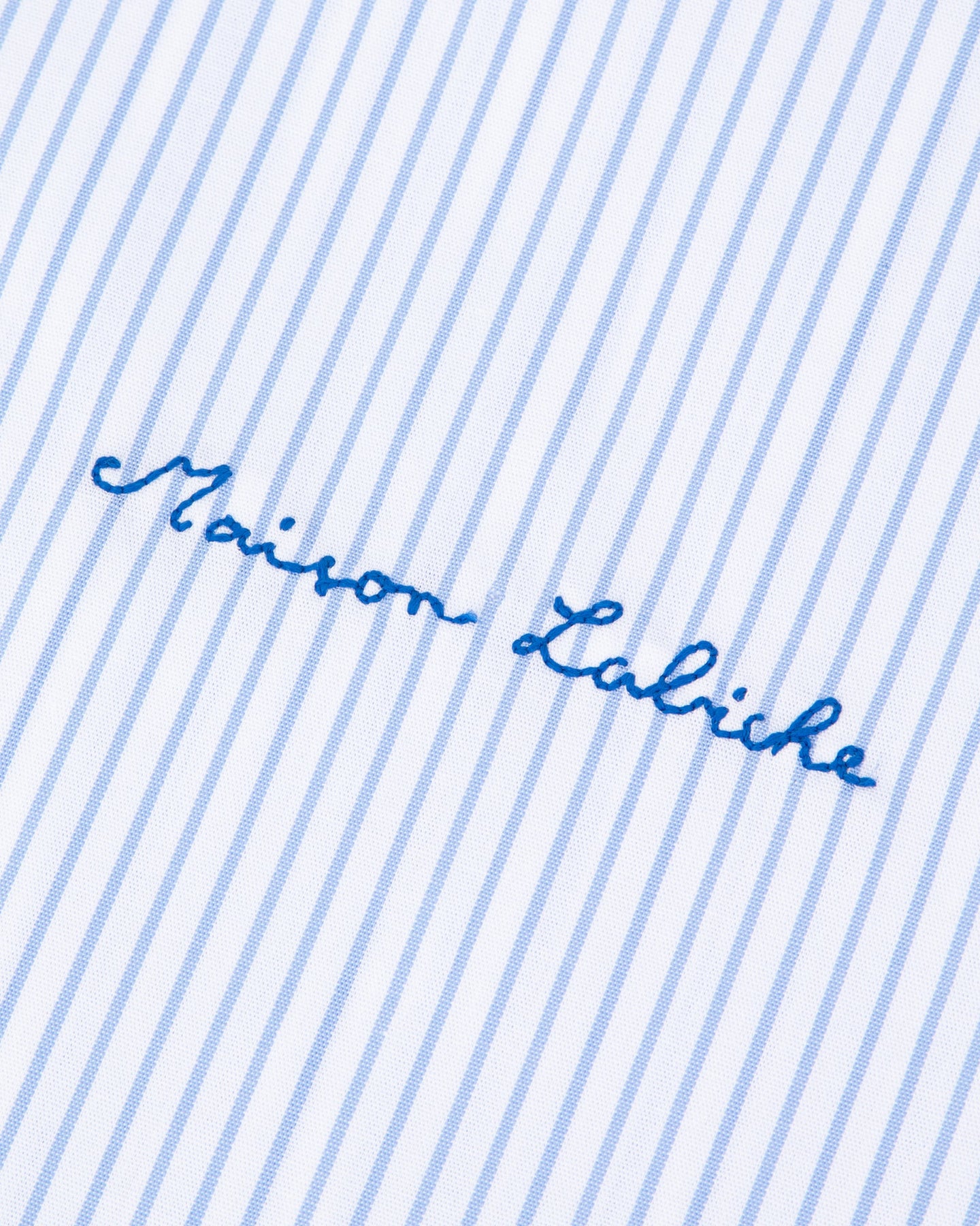 Notre chemise Breteuil a une coupe droite et large, une broderie sur l'arrière du col et des boutons gravés Maison Labiche. Sa broderie est la nouvelle signature Maison Labiche.