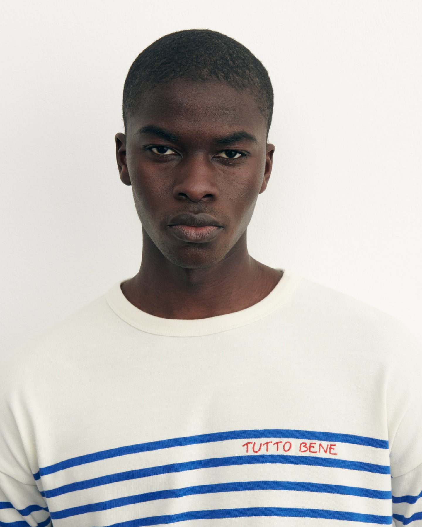 Notre marinière iconique Montpar homme a une coupe confortable et ample, des emmanchures tombantes, des fentes sur les cotes et un dos légèrement plus long. Elle est réalisée dans une maille assez épaisse et tres confortable. Sa broderie s'adresse à ceux qui s'adaptent et vivent avec simplicité.