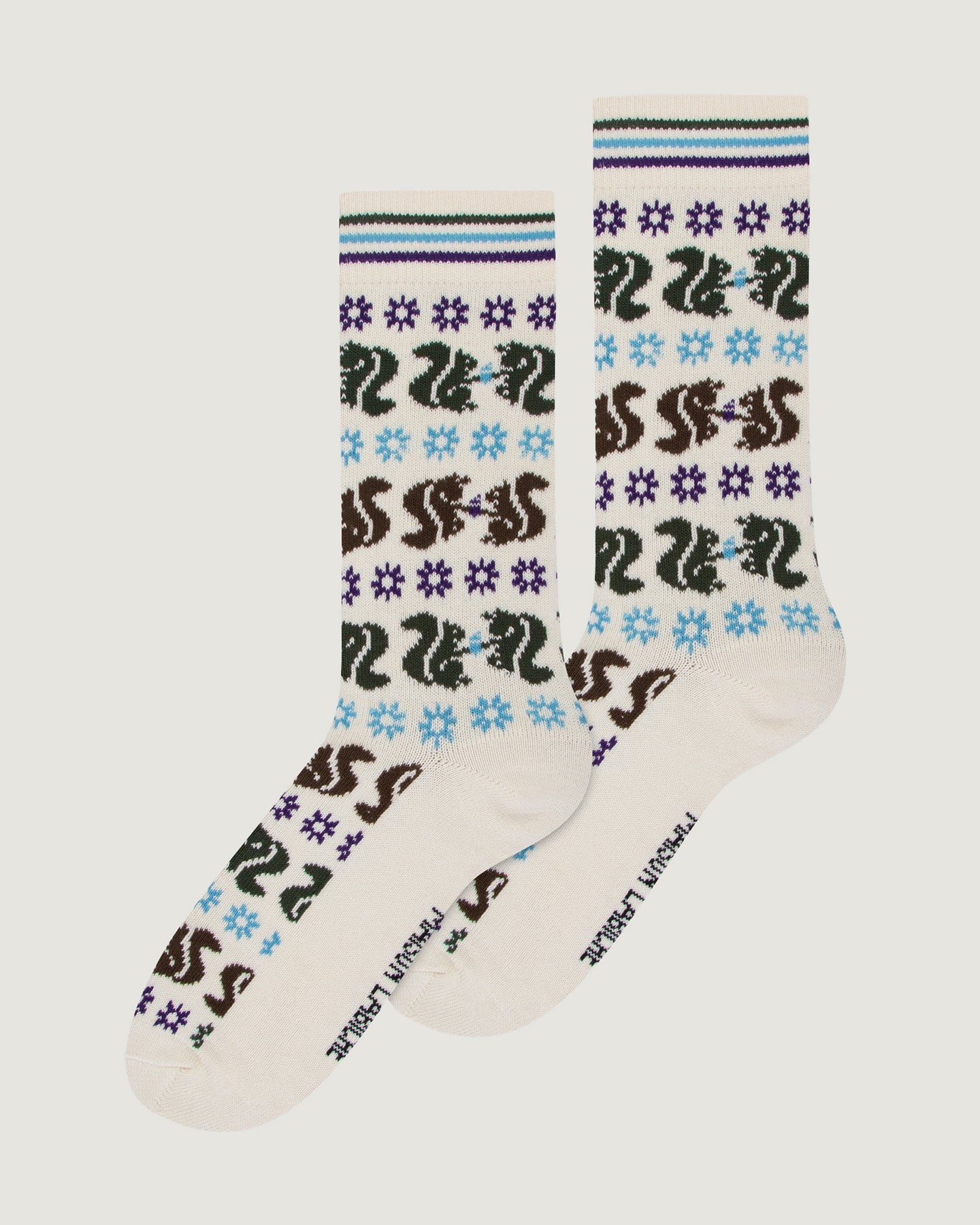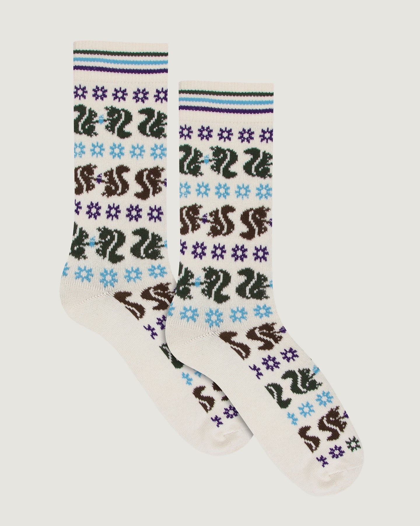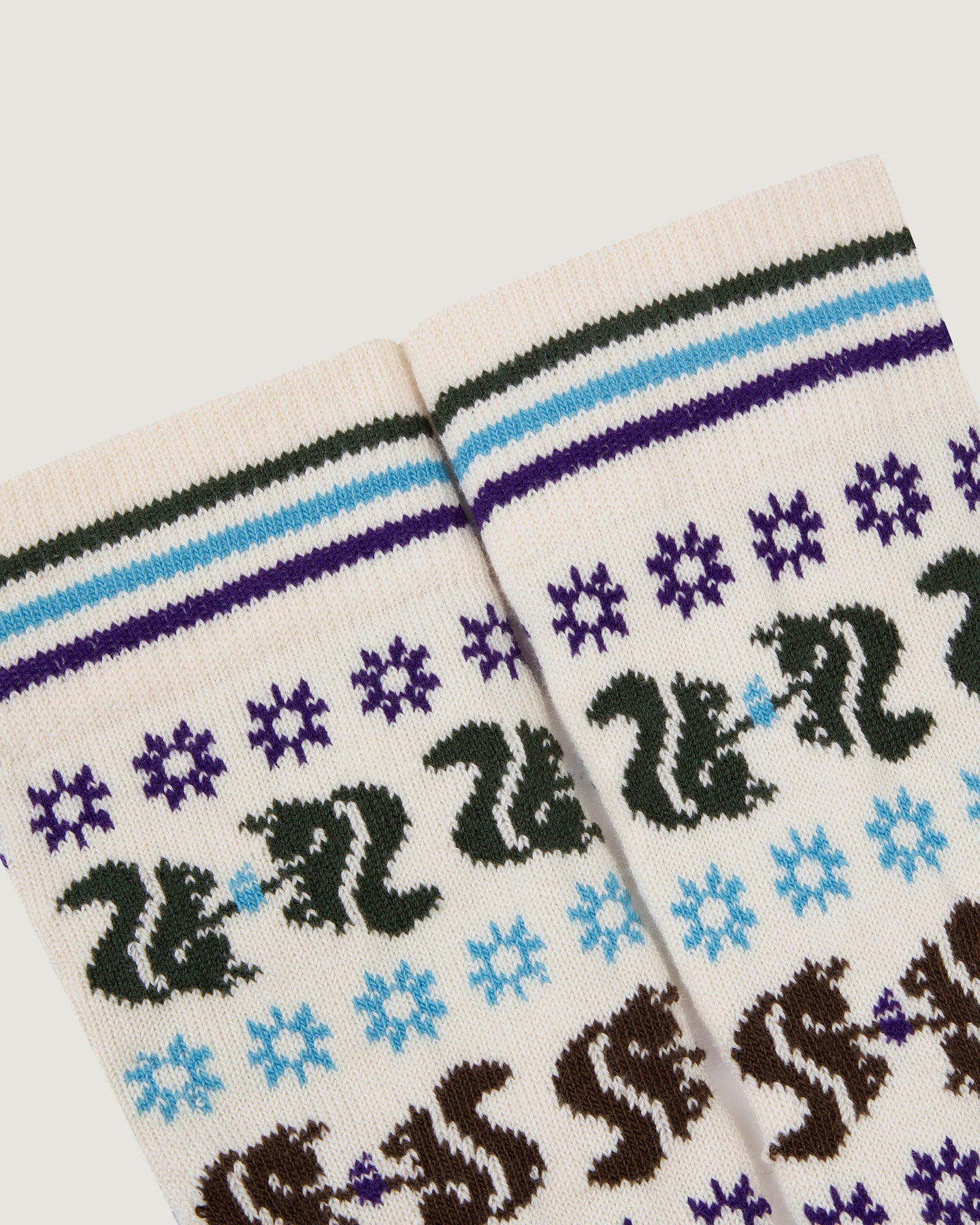 Nos chaussettes Gasnier ont une coupe sportive avec un tricot bord à bord et un motif exclusif. Son motif dessine des écureuils et leurs noisettes.