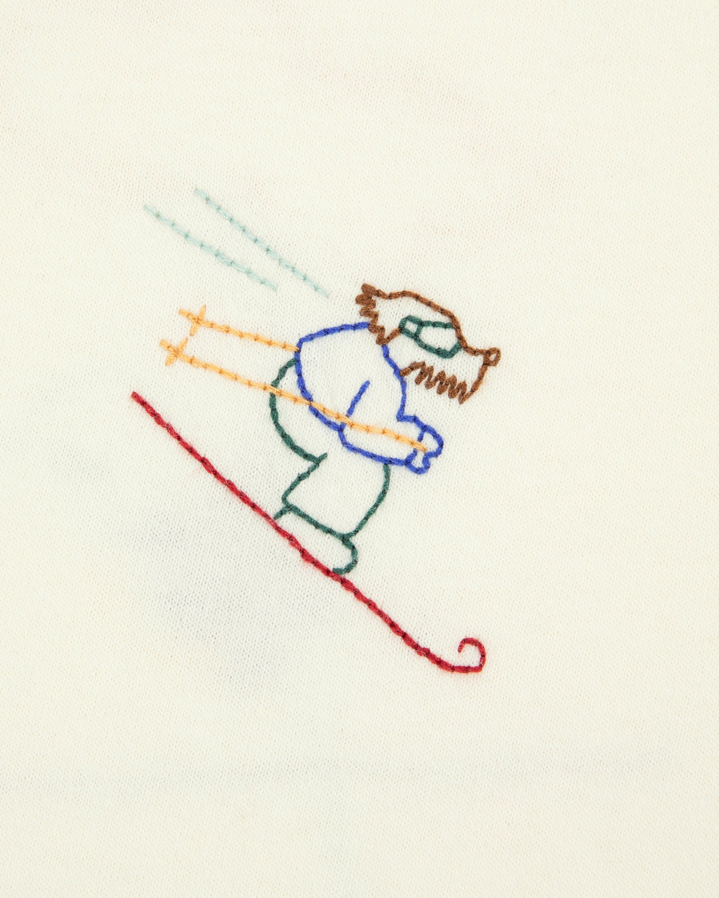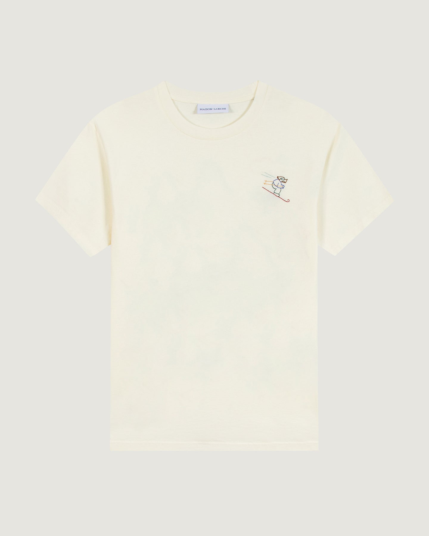 Notre tee-shirt incontournable Patureau pour homme a une coupe ample, une encolure finie en bord-côte, des finitions double aiguilles en bas des manches et du corps. Sa broderie est pour les pros du schuss.