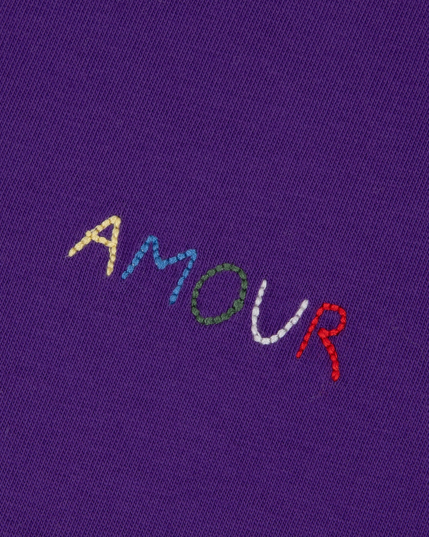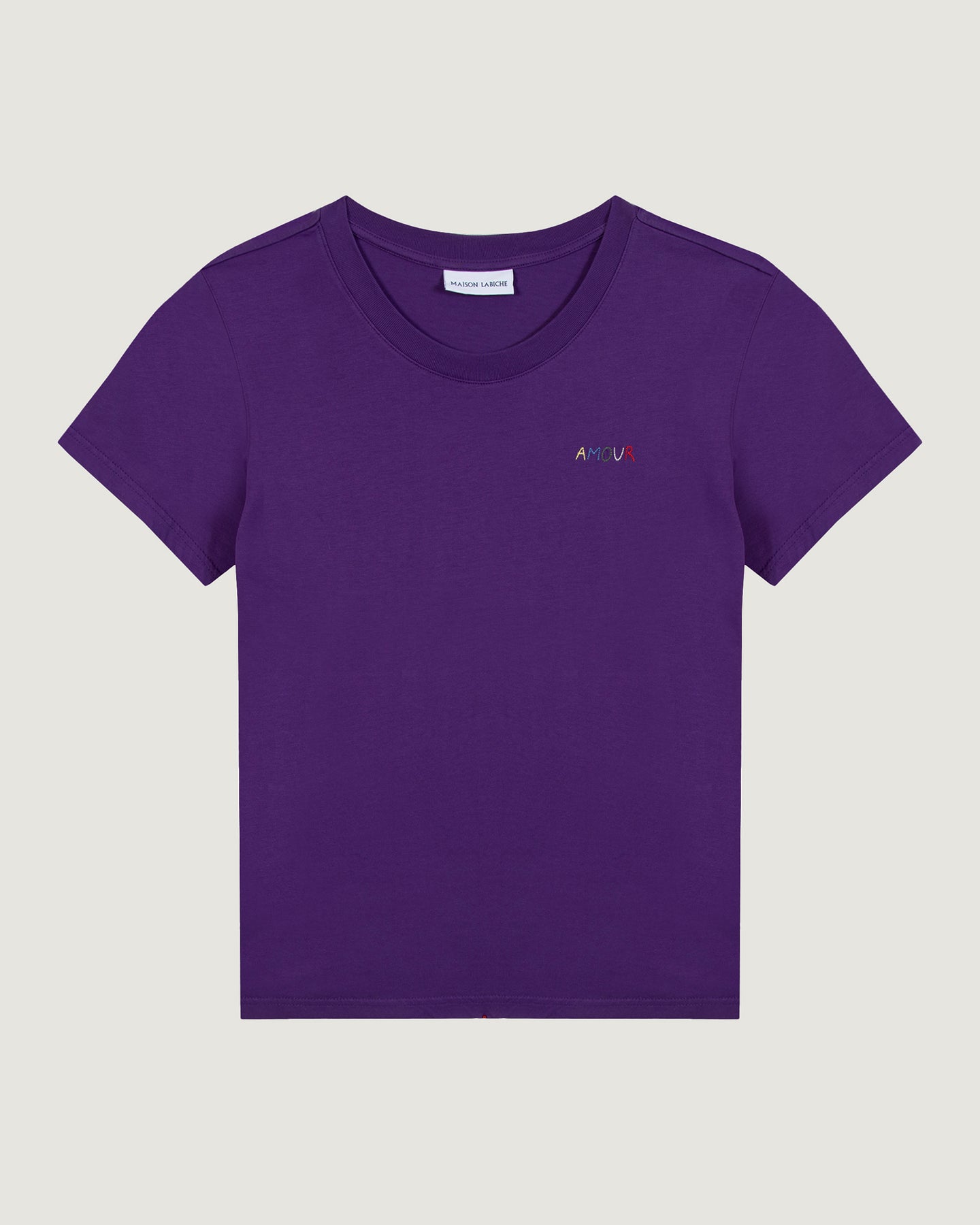 Notre tee-shirt iconique Popincourt pour femme a une coupe droite, un col ras du cou en bord-côte, une bande de propreté intérieure et une piqûre double aiguille aux ourlets. Sa broderie fait référence au plus joli des sentiments.