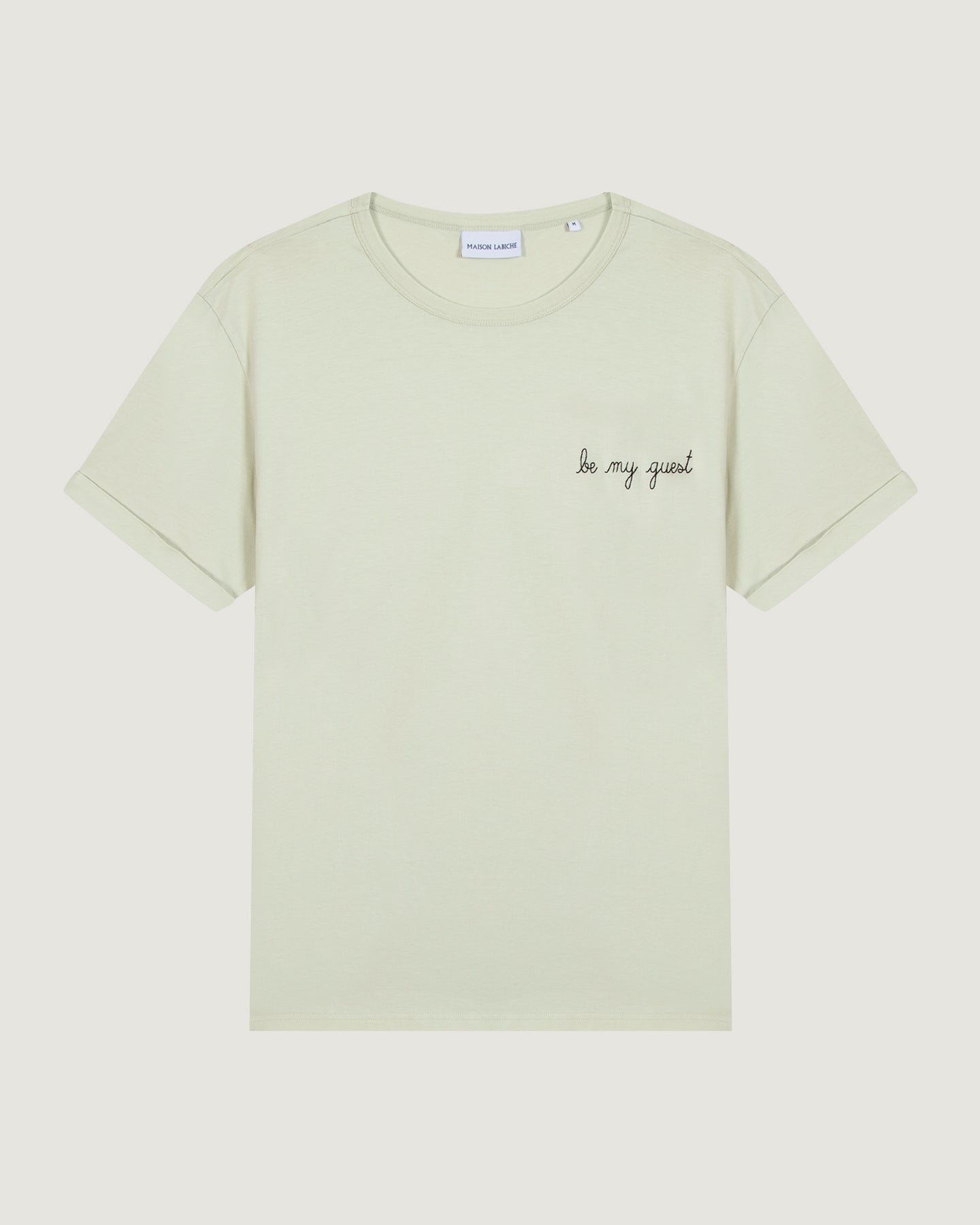 Notre tee-shirt intemporel Poitou pour homme a une coupe ajustée, des revers en bas des manches et une encolure finie avec un colletage en bord-côte. Sa broderie est pour ceux qui invitent.