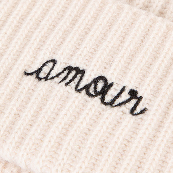 This season, the Buzelin jumper has been reinvented with an exclusive touch from Maison Labiche: personalization. Your words take shape in braided cashmere cord, hand-crocheted and then embroidered in France. An original font and the colour of your choice make this a unique and personal piece.