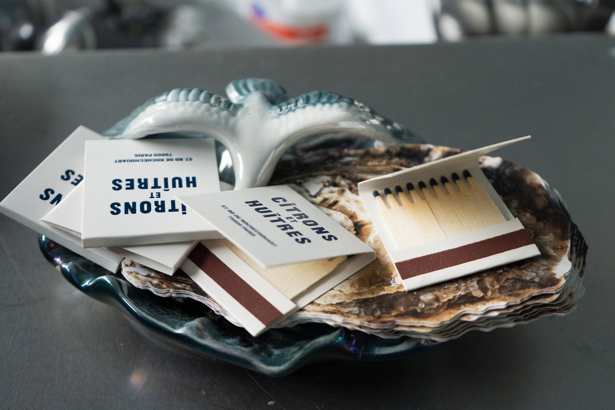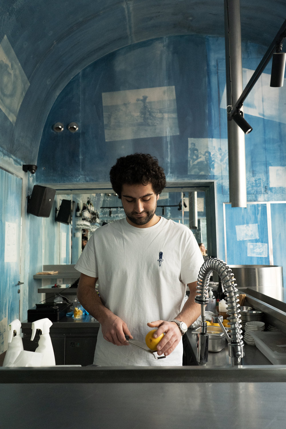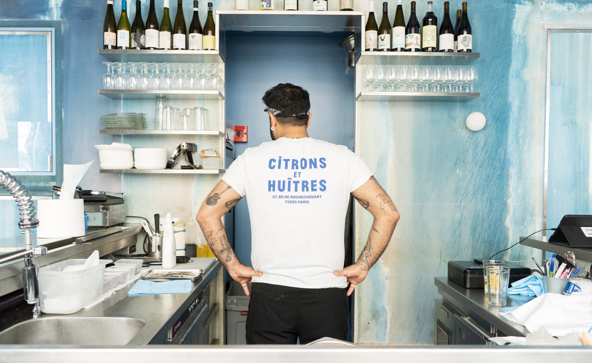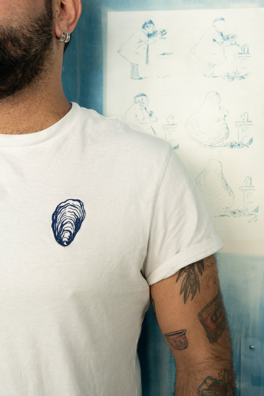 Last surprise, the Orso group recently opened “Citrons et Huitres”, an oyster bar located right next door to the Hotel Rochechouart. Maison Labiche created new unique embroideries in collaboration with the artistic direction of the place to affix motifs such as an oyster or a knife on their iconic white T-shirt (available for sale at the bar).