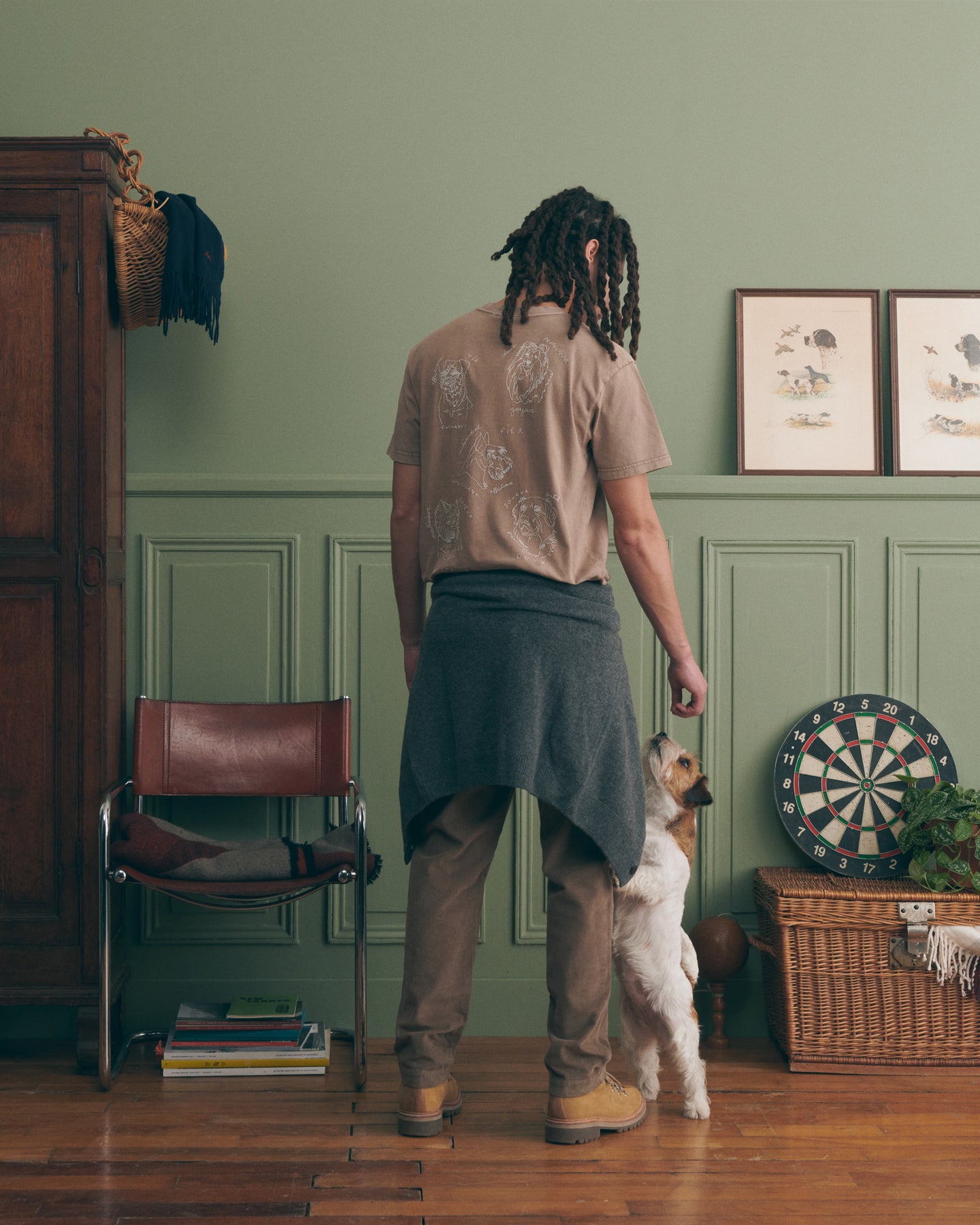 Our oversized Patureau men's T-shirt has a loose fit and ribbed neckline. Its embroidery is a tribute to our faithful companions.