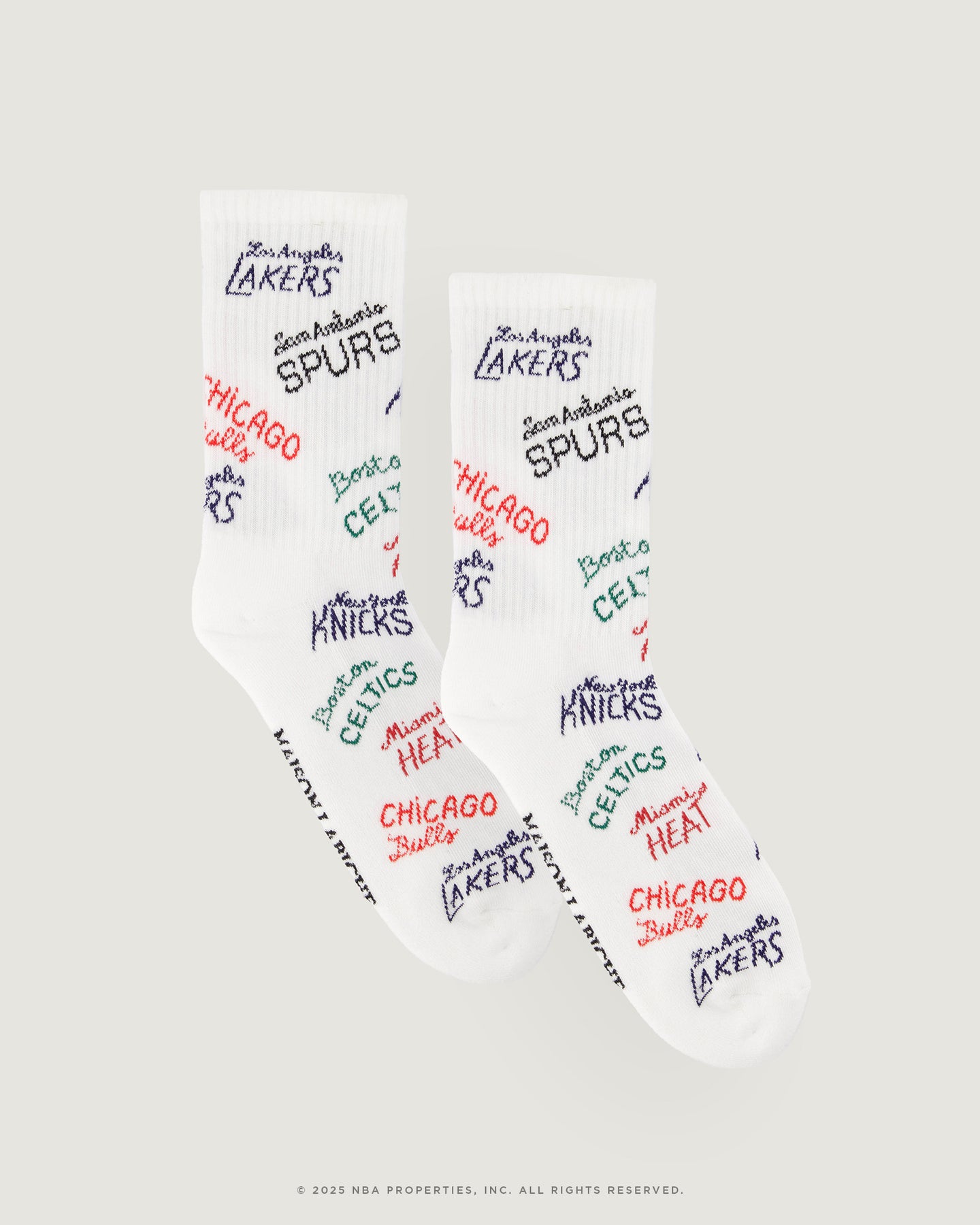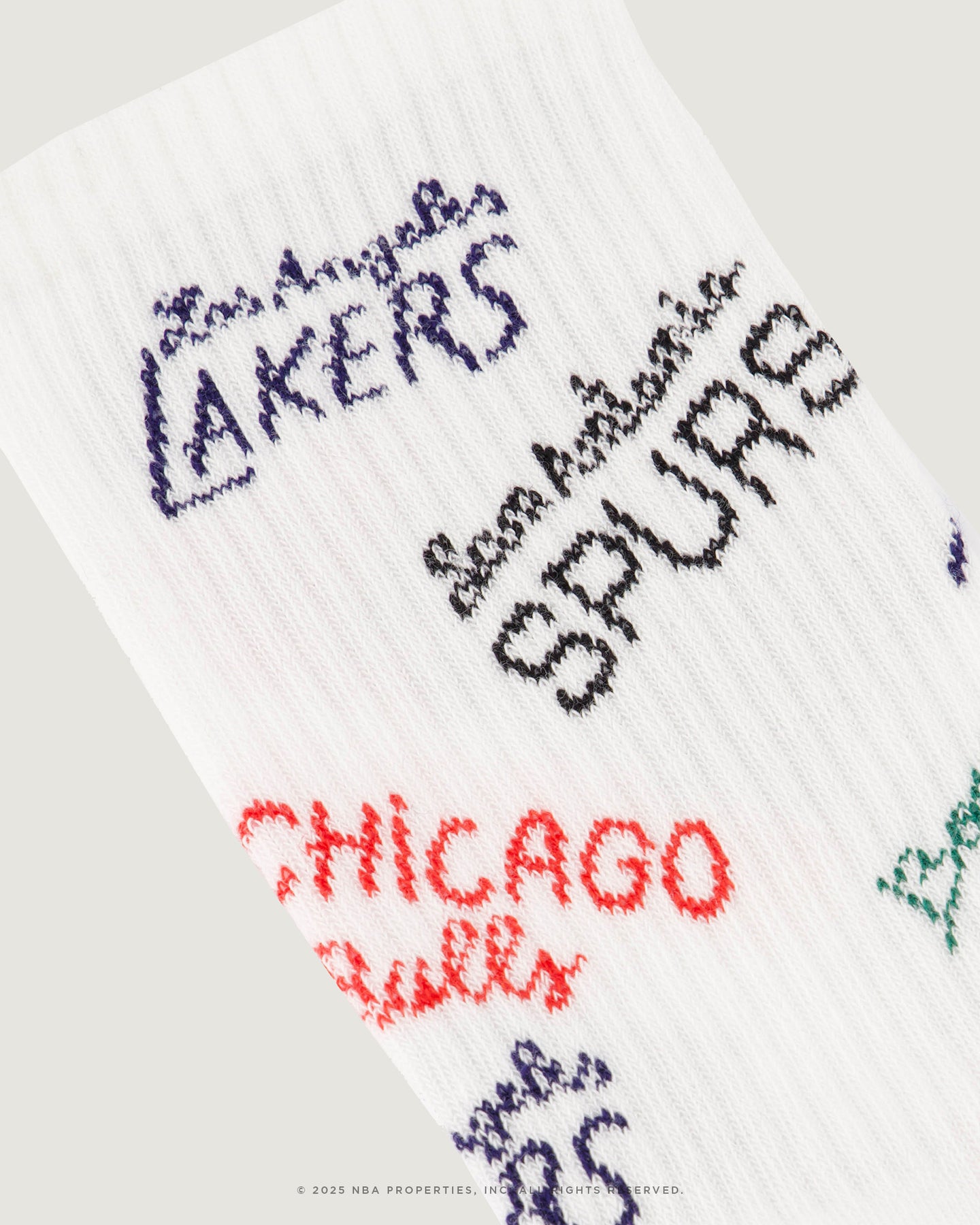 Our Gasnier socks have a sporty cut with edge-to-edge knitting and an exclusive pattern. Its design pays tribute to iconic NBA teams.