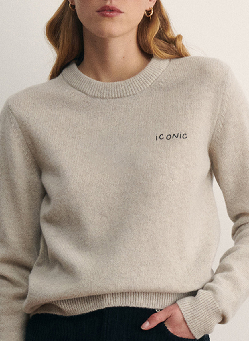 This season, the Buzelin jumper has been reinvented with an exclusive touch from Maison Labiche: personalization. Your words take shape in braided cashmere cord, hand-crocheted and then embroidered in France. An original font and the colour of your choice make this a unique and personal piece.