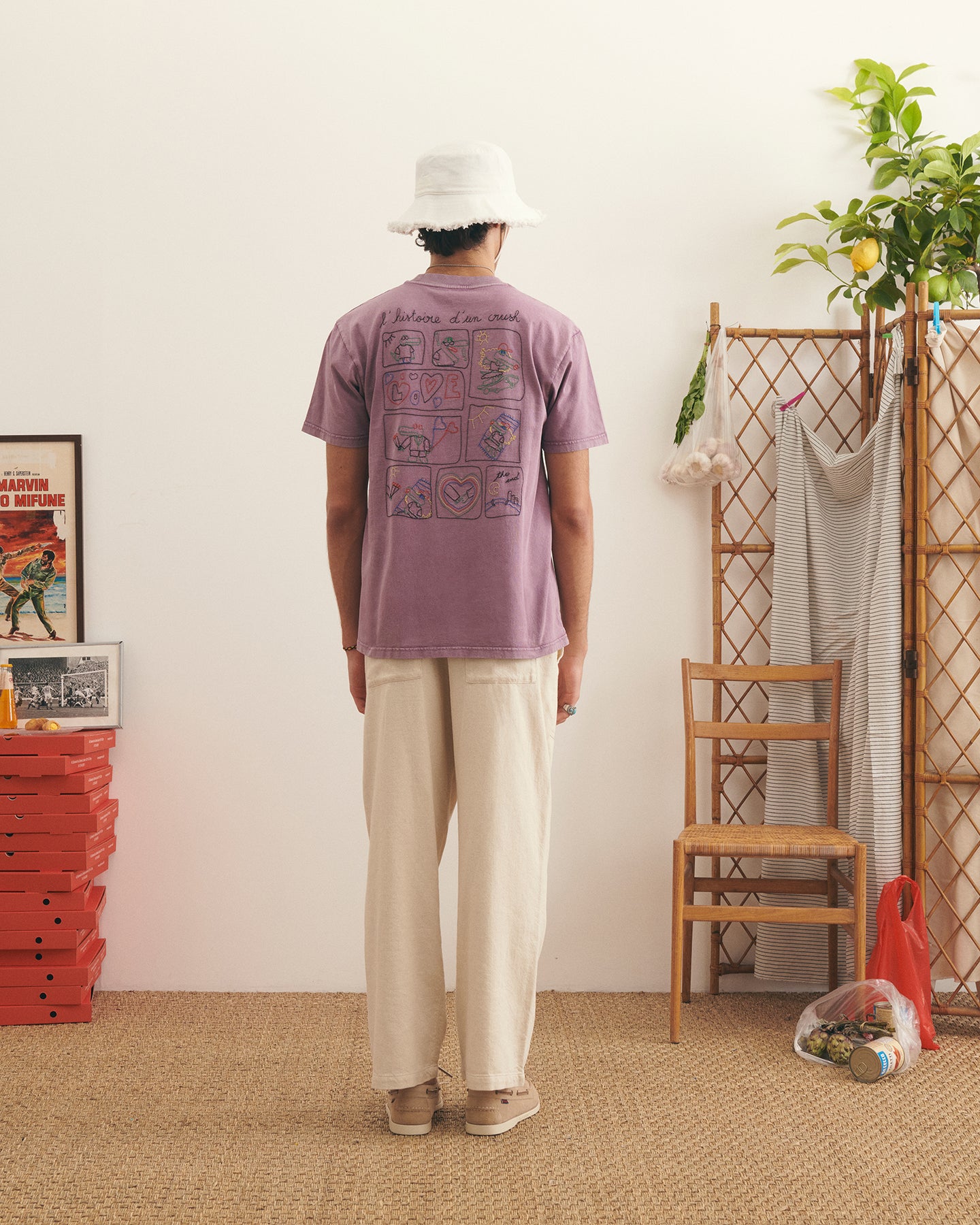 Our must-have Patureau T-shirt has a loose fit, a ribbed neckline, double needle finishes at the bottom of the sleeves and body. Its embroidery is the story of a crush.