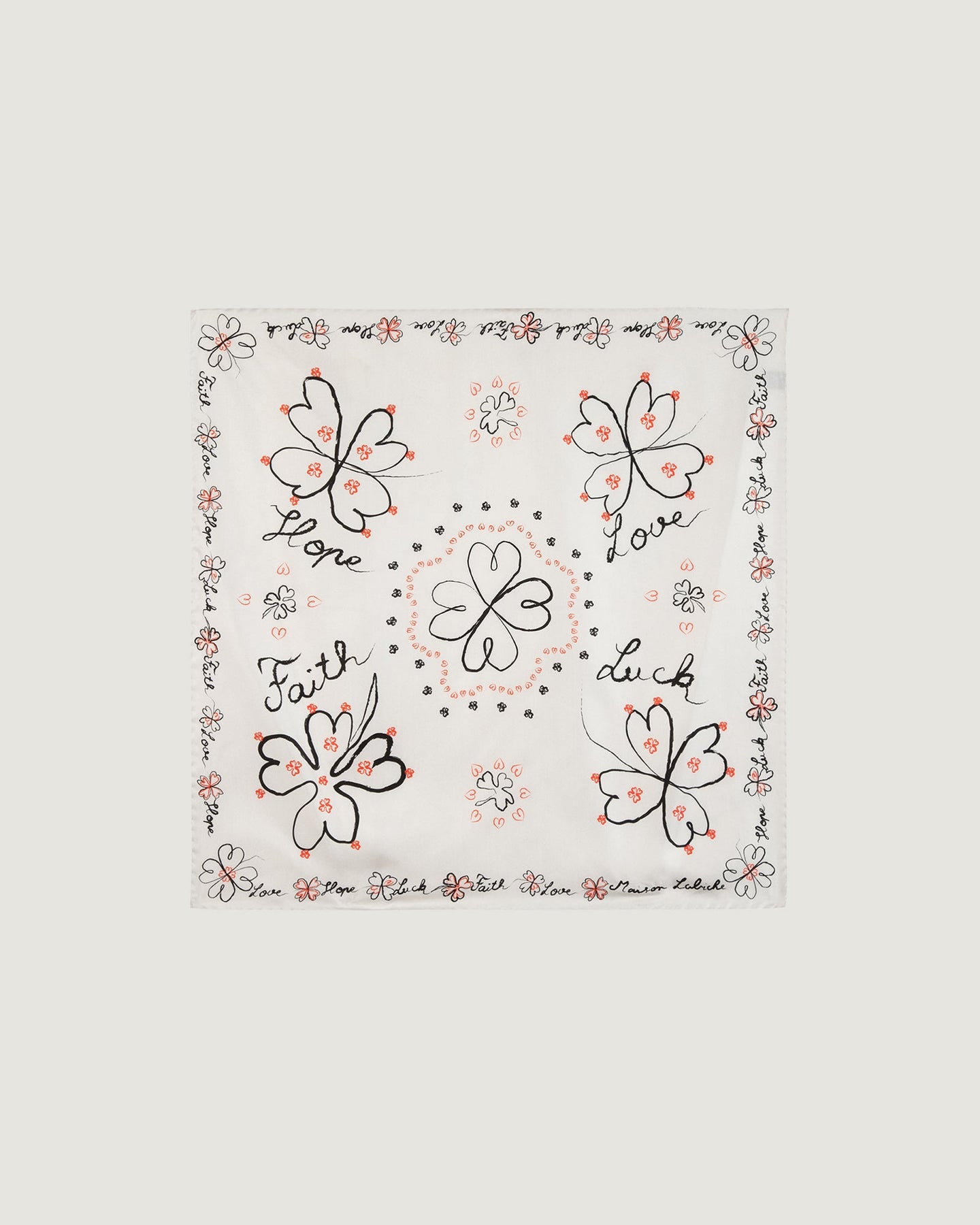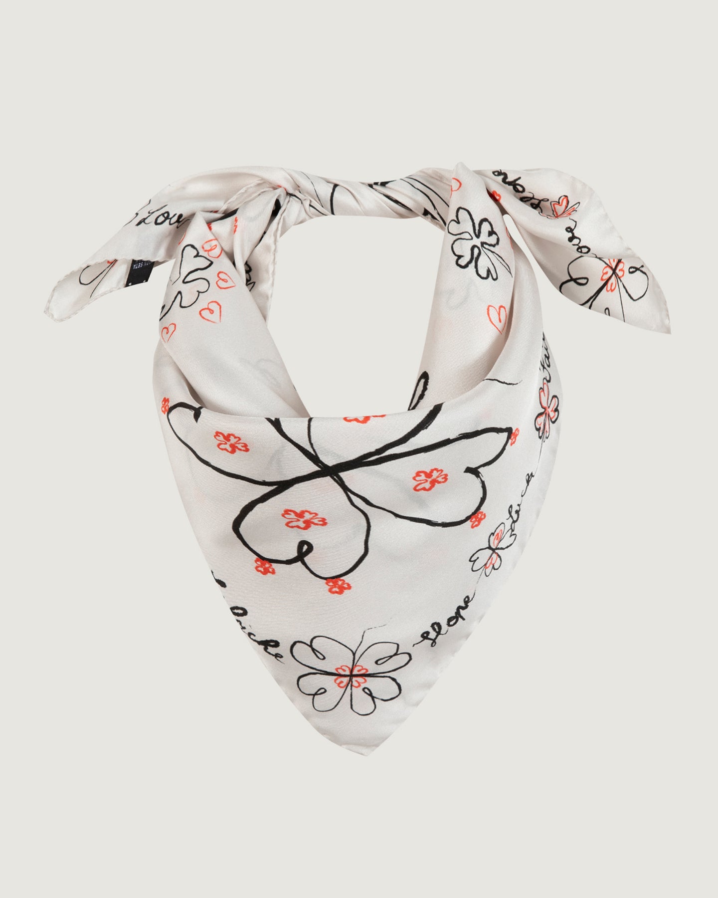 Our Boulinois printed silk scarf is a square measuring 55x55 cm. Its embroidery evokes the most beautiful of feelings.